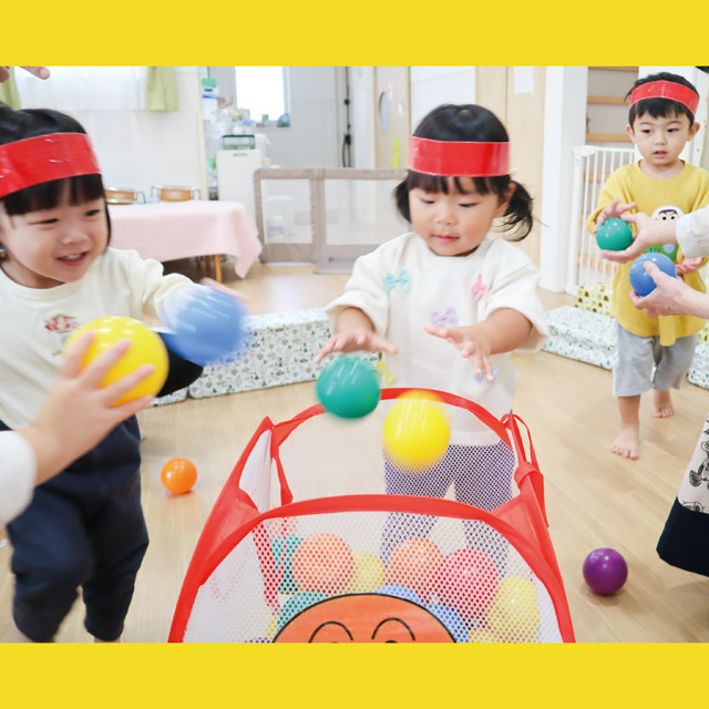 玉入れ・かけっこ・おやつ取り競争など、数日に渡って運動会ごっこを!